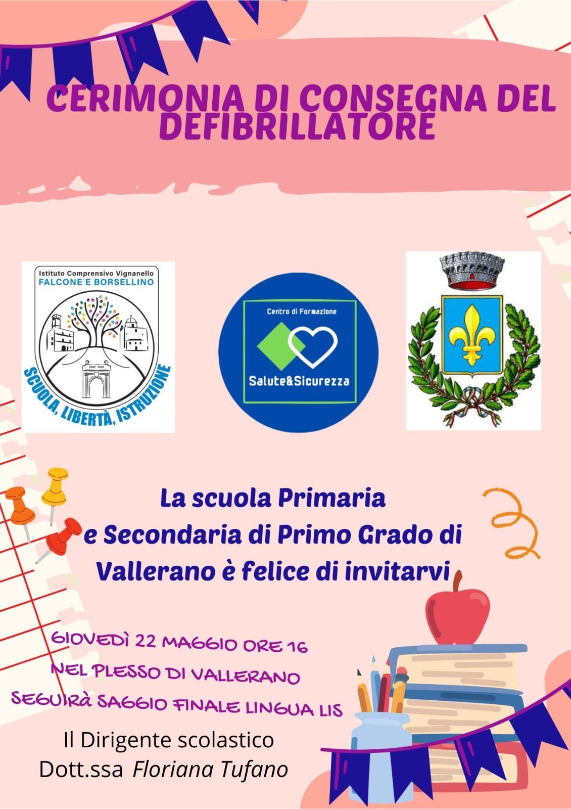 HomeLocandina Cerimonia di consegna del defibrillatore 22 maggio 2025 Locandina Cerimonia di consegna del defibrillatore 22 maggio 2025 Tipologia Data: Maggio 15, 2025 Comunicazione usr e mim. Sessione suppletiva di esami di accertamento della piena conoscenza della lingua francese Decreto Costituzione Comitato di valutazione triennio 2024-2027
