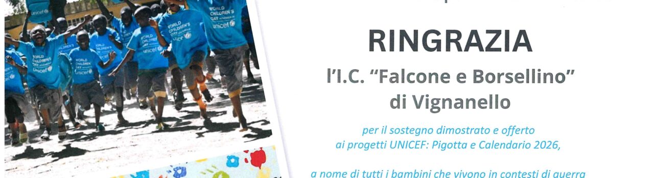 HomeRingraziamento Unicef Ringraziamento Unicef Tipologia Data: Febbraio 12, 2026 UNICEF Circolare n-156 – Giornata del ricordo 10 febbraio 2026 Giornata della memoria e del ricordo 2026
